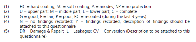 Tilstandsevalueringsrapport: Som navnet antyder, gir denne rapporten den komplette rapporten om fornyelsesundersøkelsen som er utført for skipet. For eksempel vil det gi den faktiske tilstanden til tankbelegget (malingsbelegget). Good, fair og poor.