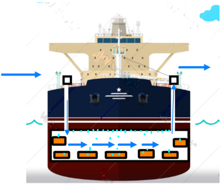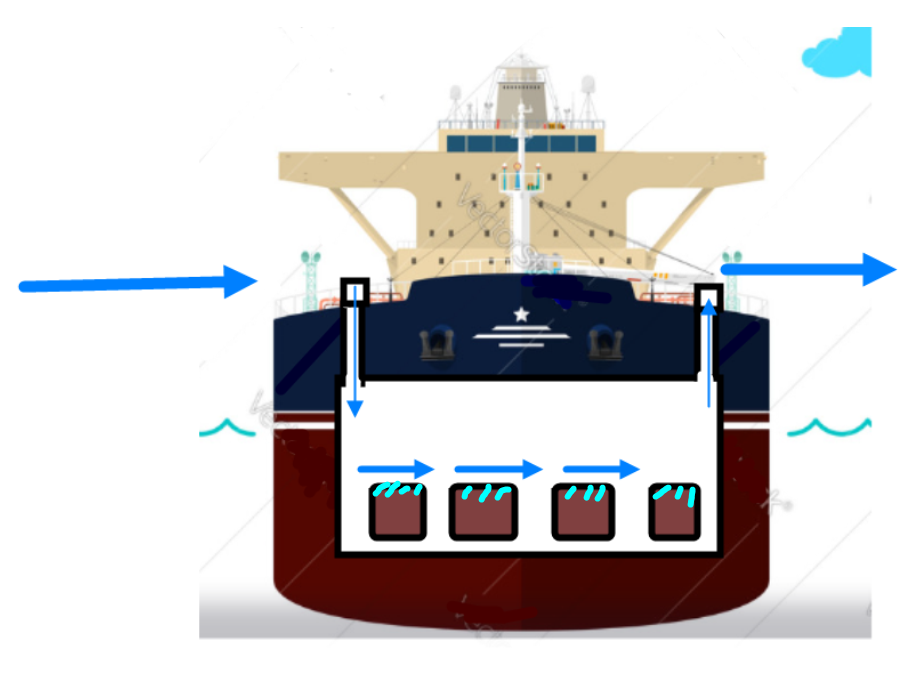 Det er 3 bevegelsesmåter i skipets lasterom som er ansett når det gjelder mekanisk ventilasjon: