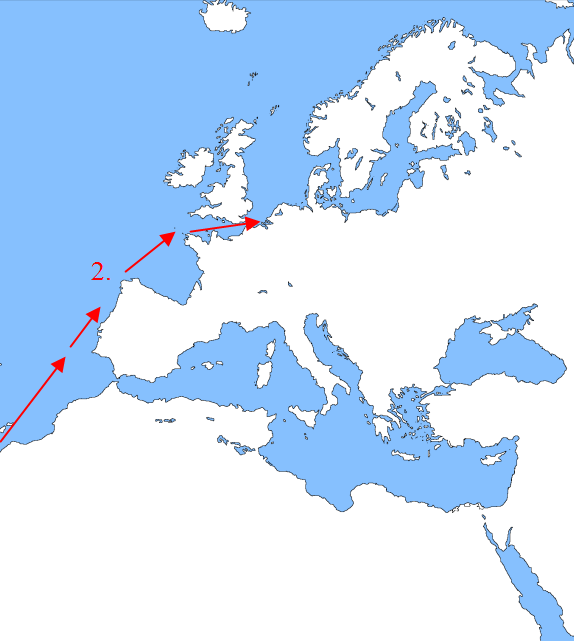 Figur 07,06 viser et kartutsnitt på en reise i fra Vest Afrika til Europa.