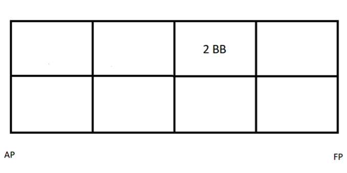 (Svar: 96 cm akterlig)d) Hvor mye ballast må flyttes fra forepeak (FP) til akterpeak (AP) for å komme flott fra sandbanken?